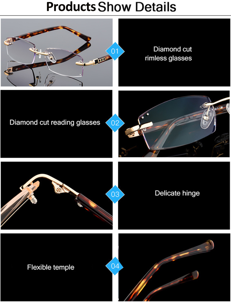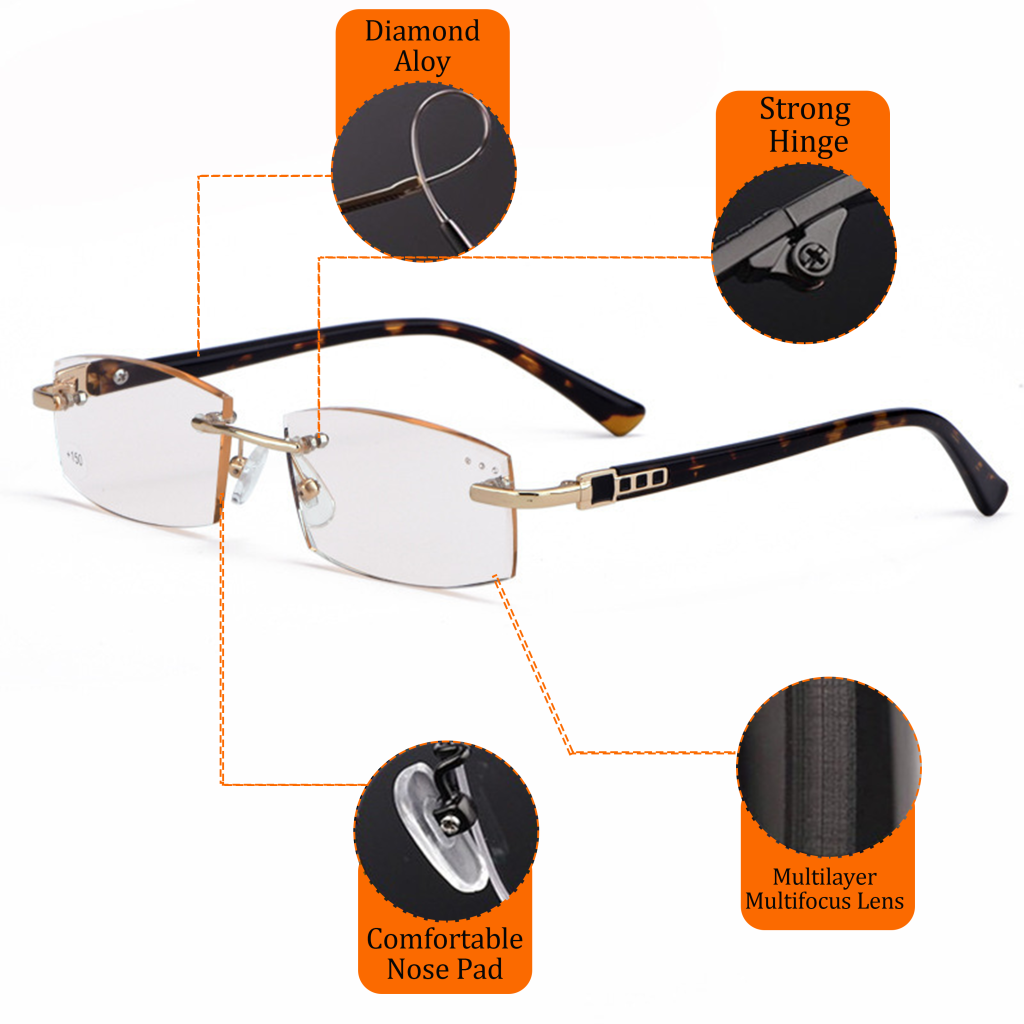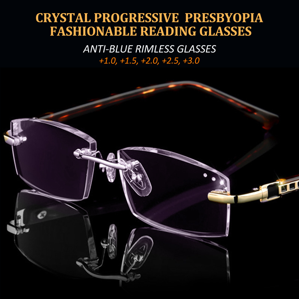 1 GOLDEN CRYSTAL PROGRESSIVE RIMLESS READING GLASSES